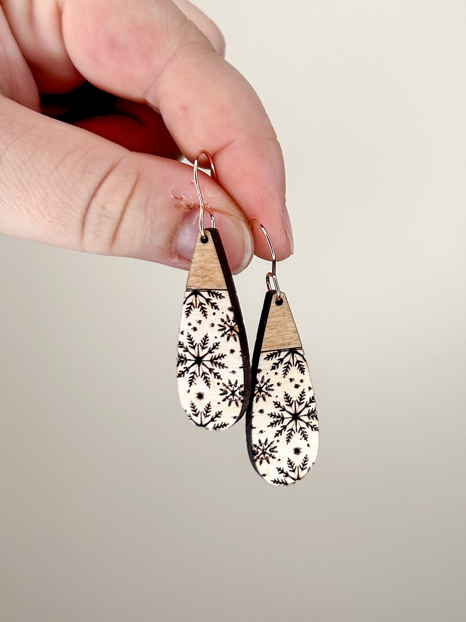 Modern Snowflake Wooden Earrings