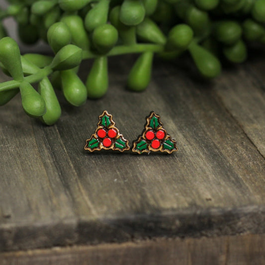 Holly Wooden Stud Earrings