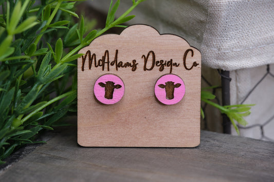 Pink Wooden Cow Studs