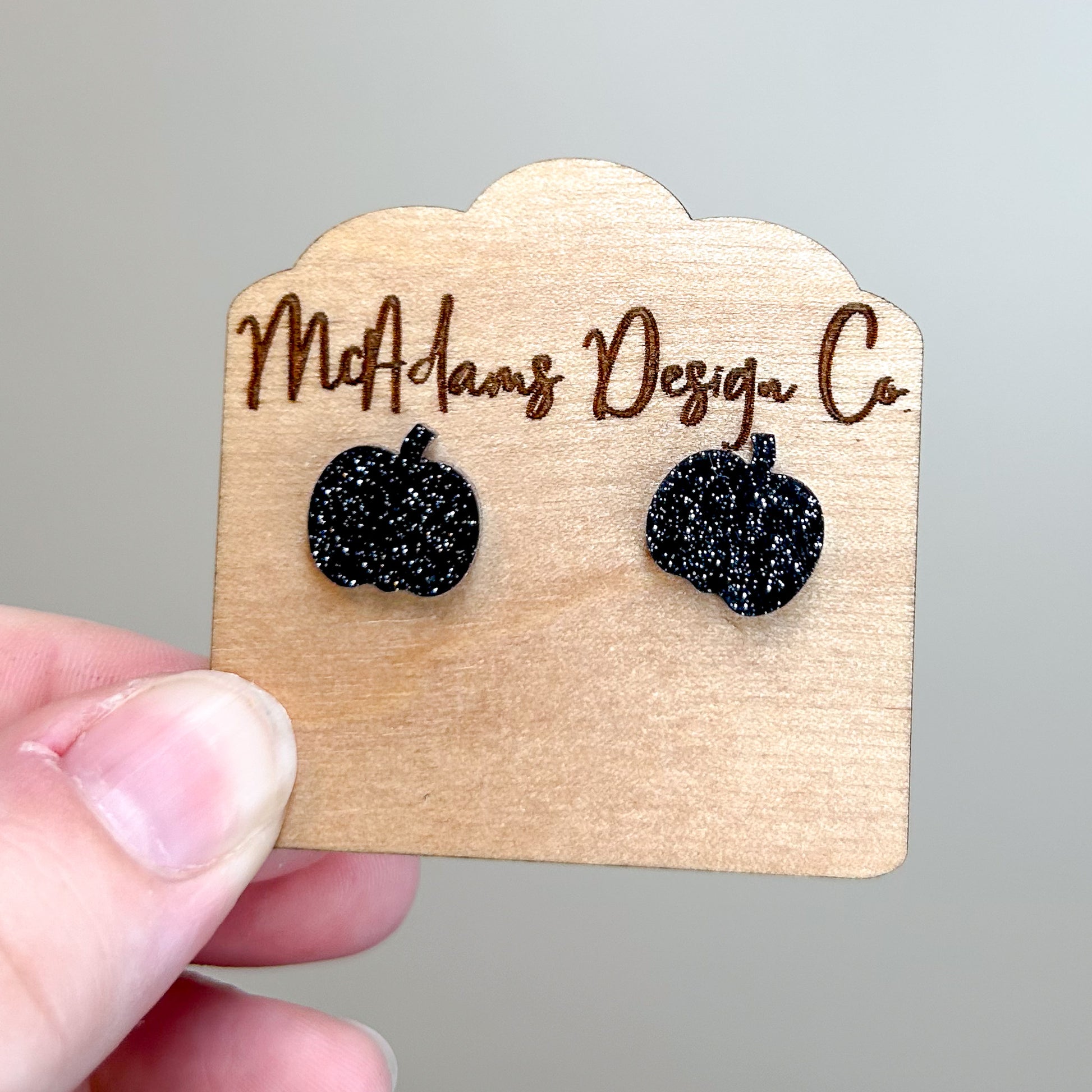 Black Glitter Pumpkin Acrylic Studs