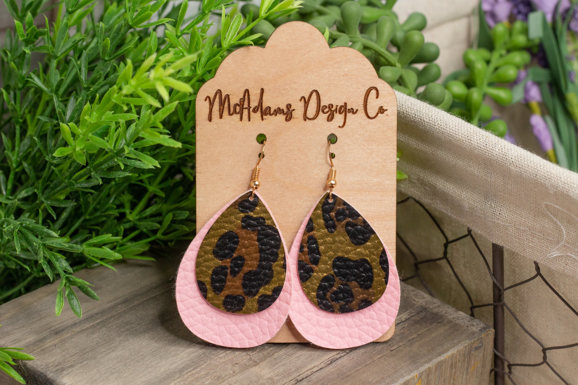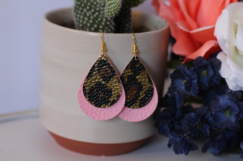 These earrings are beautiful, lightweight, and make perfect gifts. They are the perfect accent to any outfit for any occasion. Made with vegan faux leather and the findings are nickel and lead free, perfect for sensitive ears.
