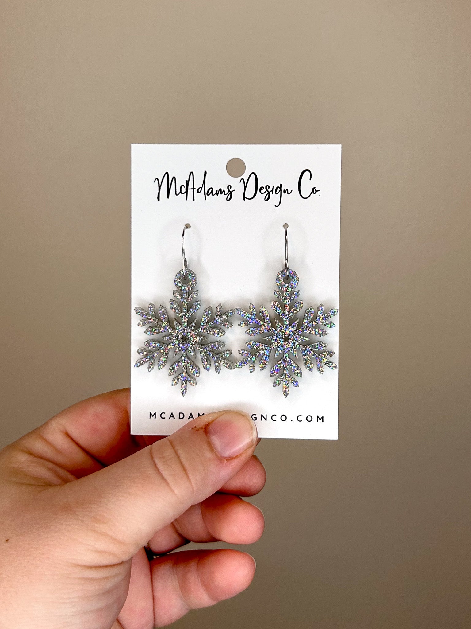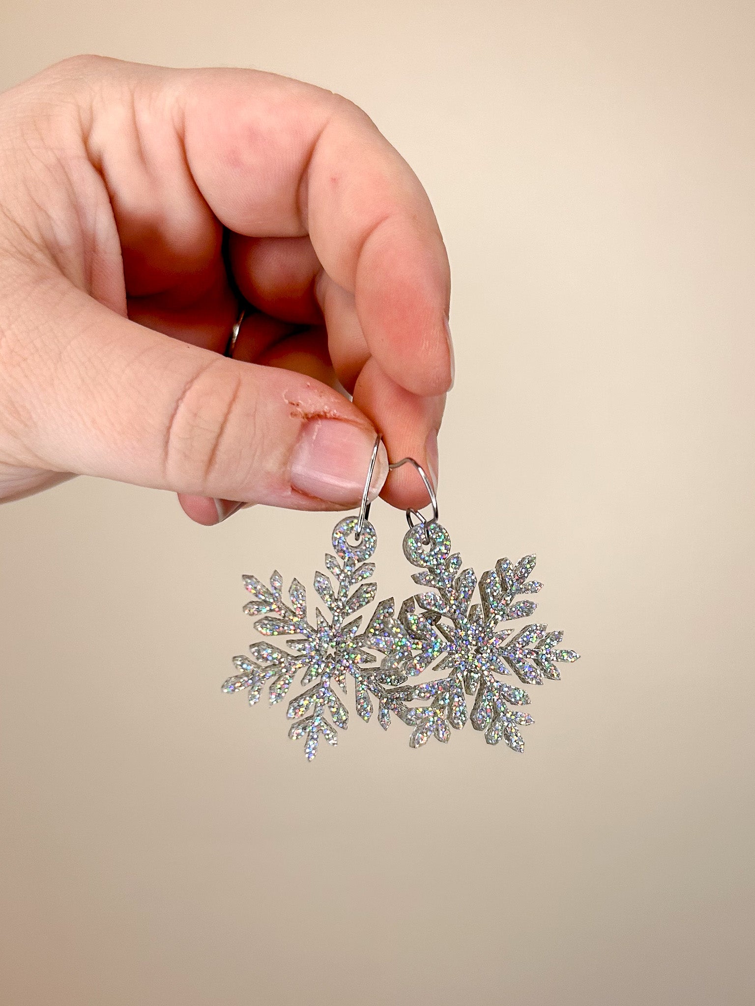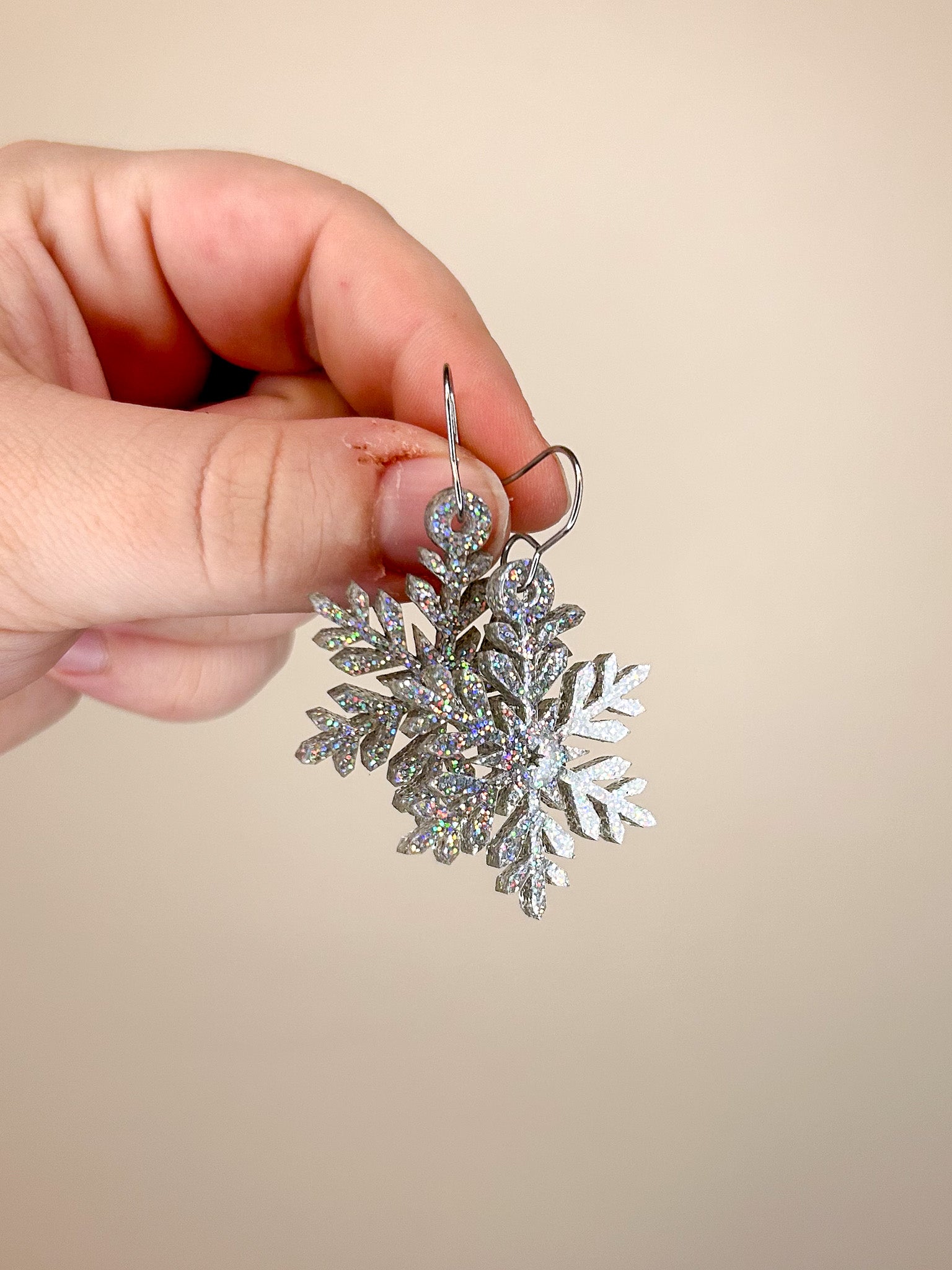Iridescent Glitter Snowflake Acrylic Earrings