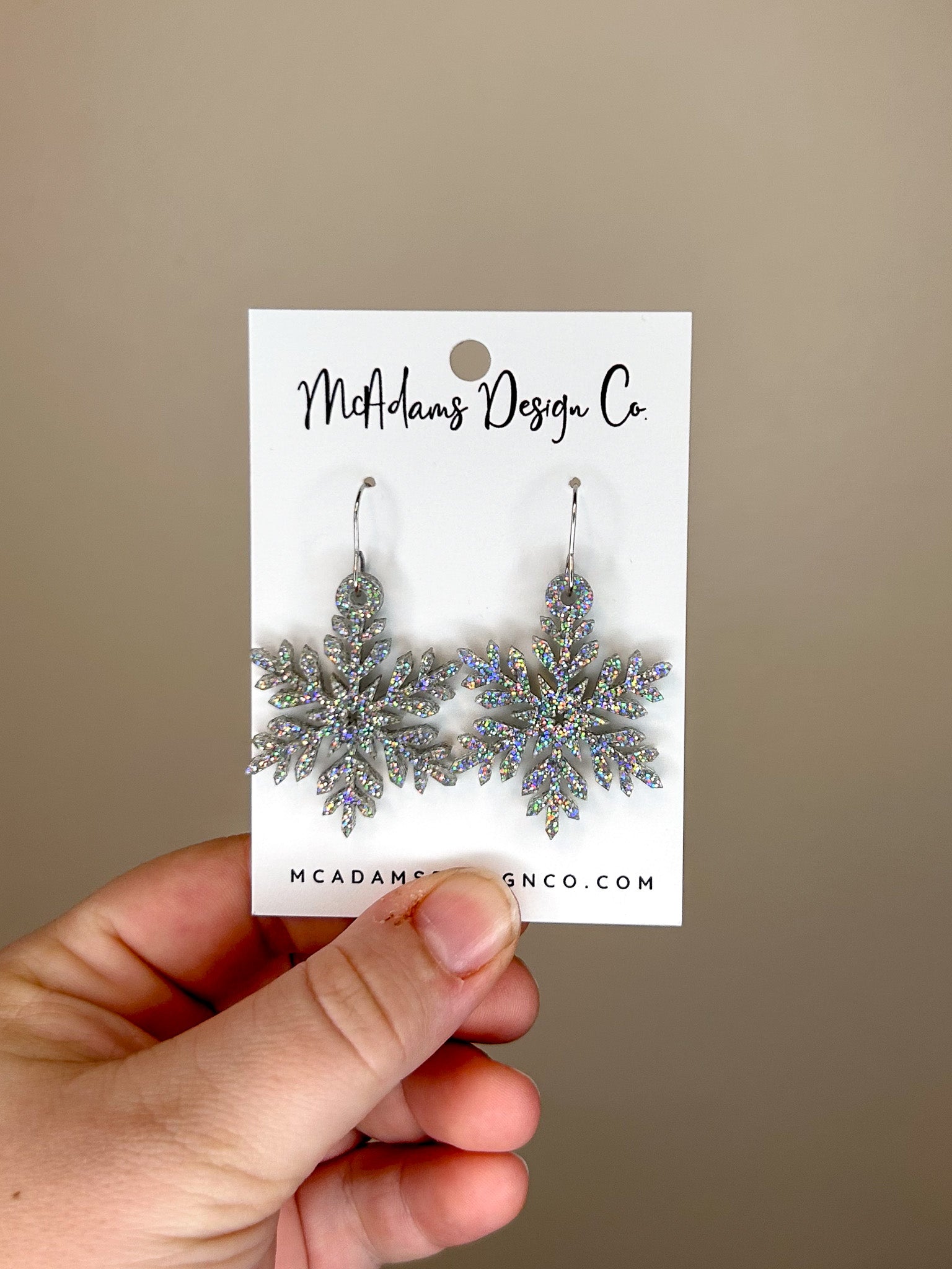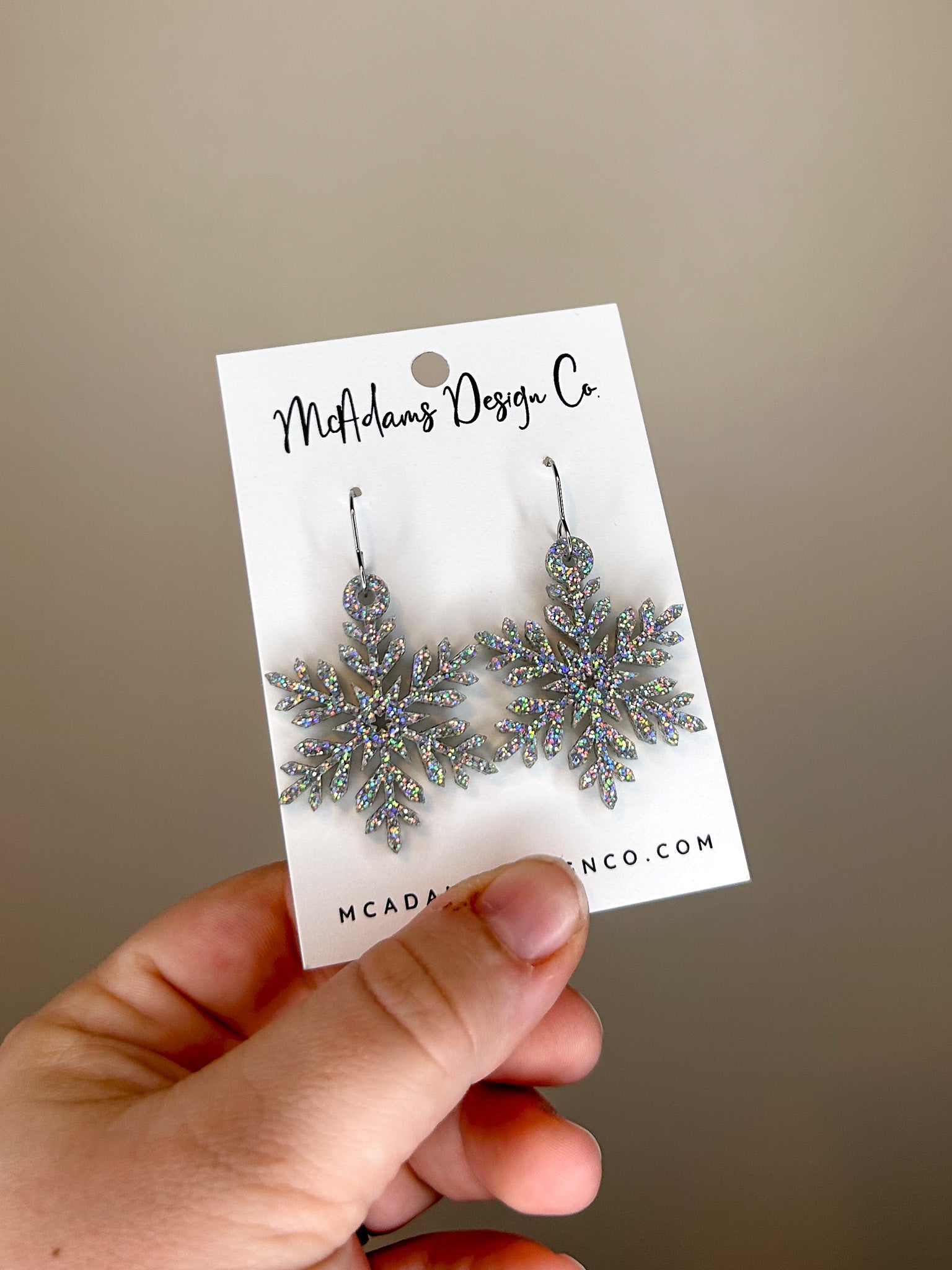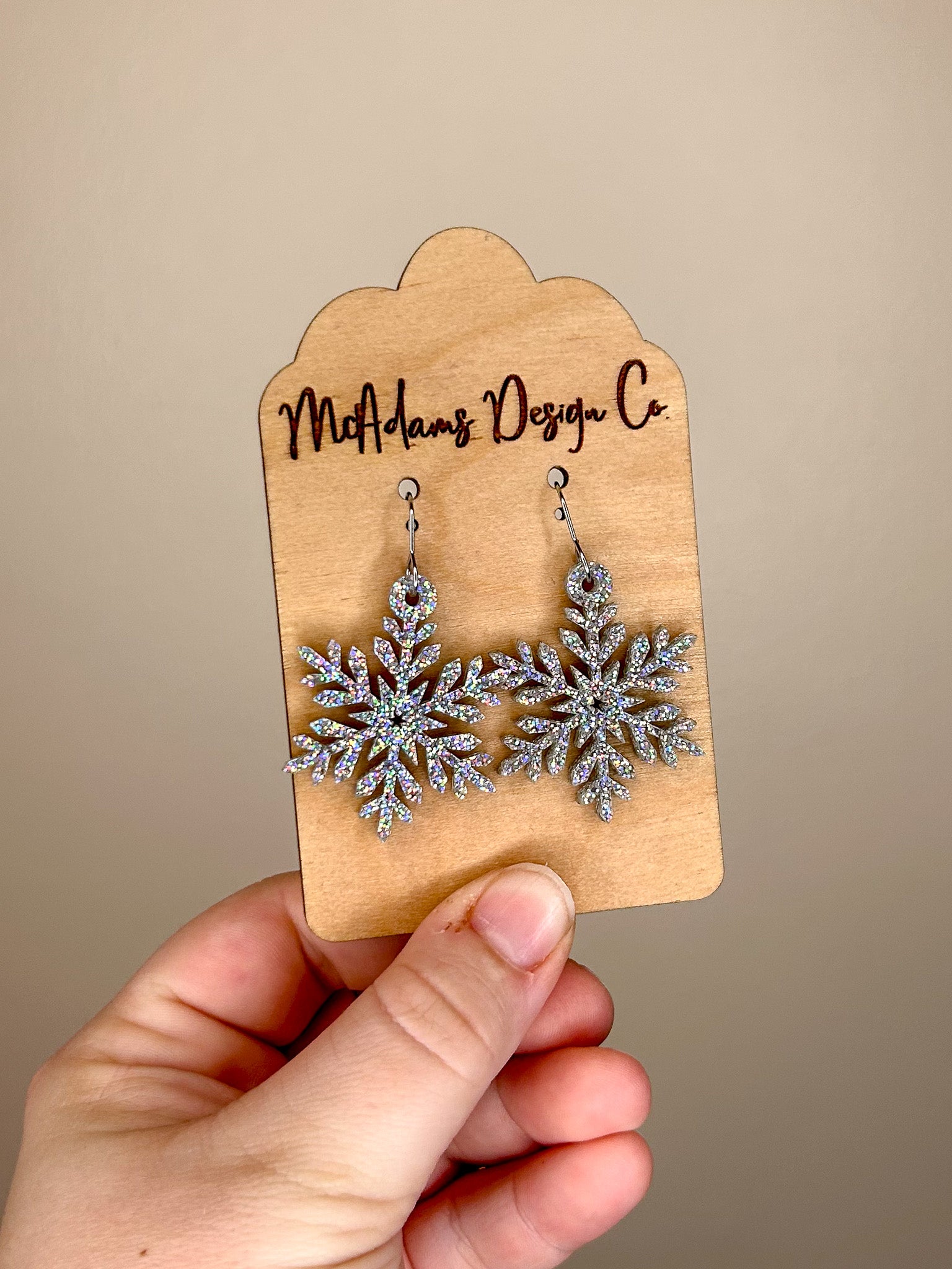 Iridescent Glitter Snowflake Acrylic Earrings