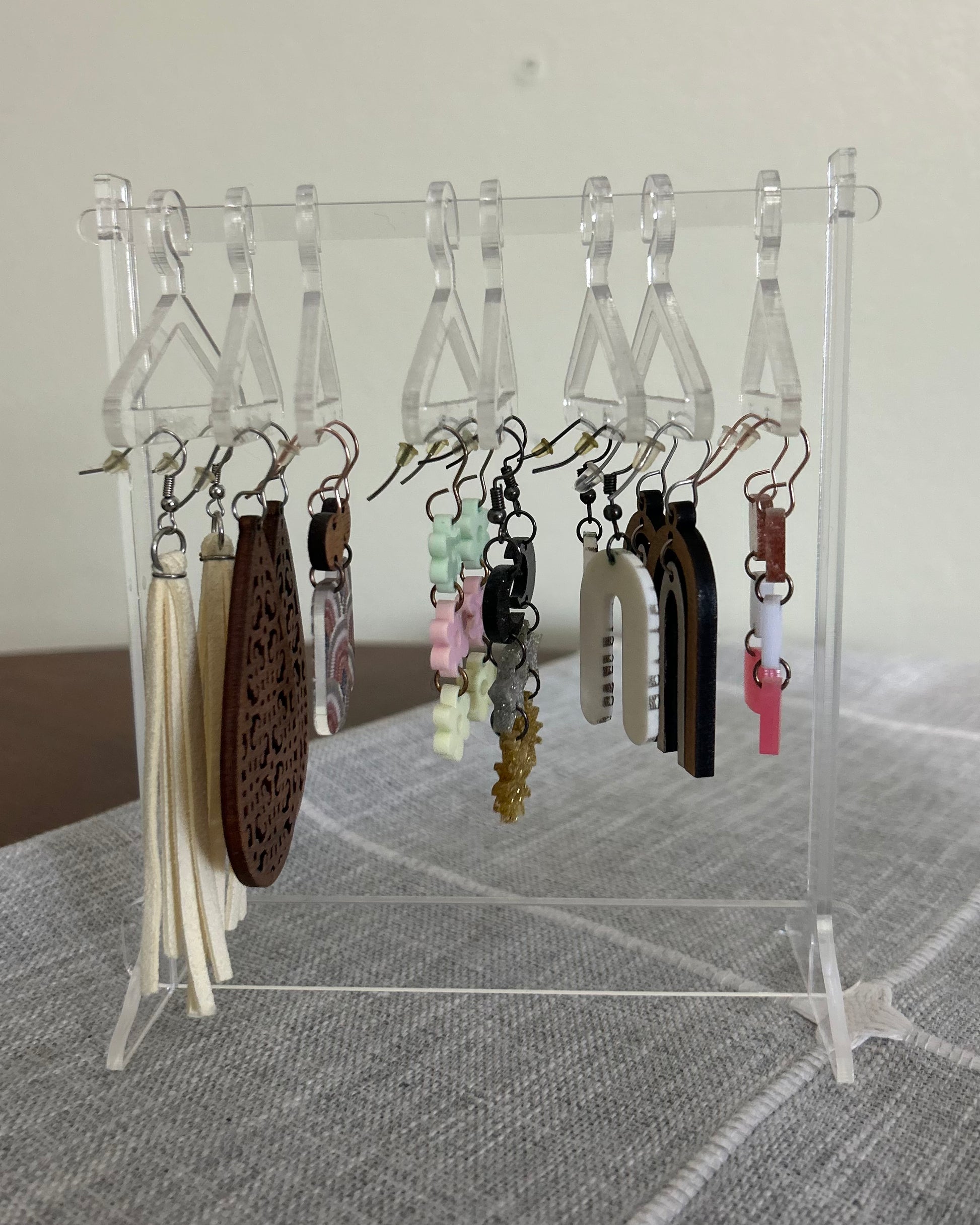 Includes 8 hangers + rack. Earrings not included.
