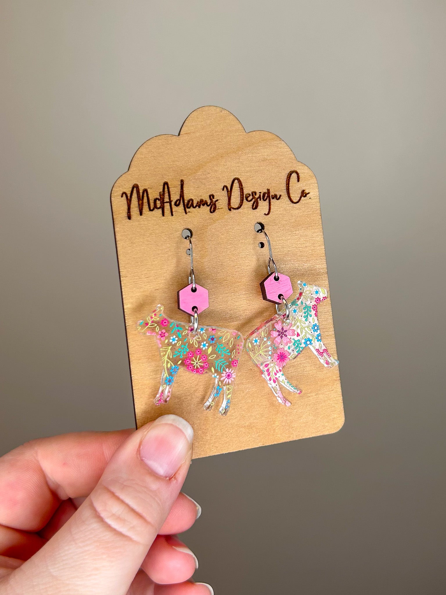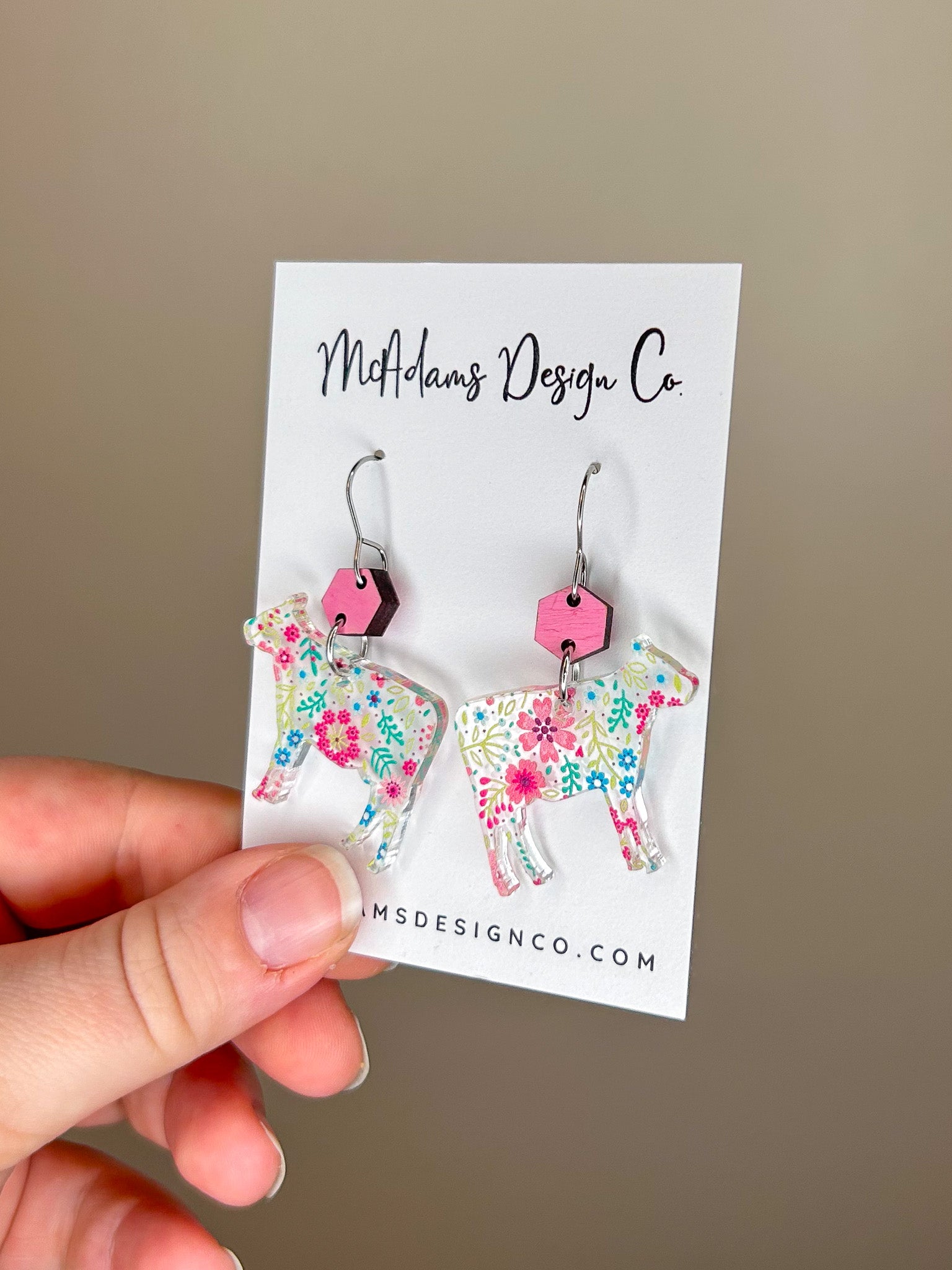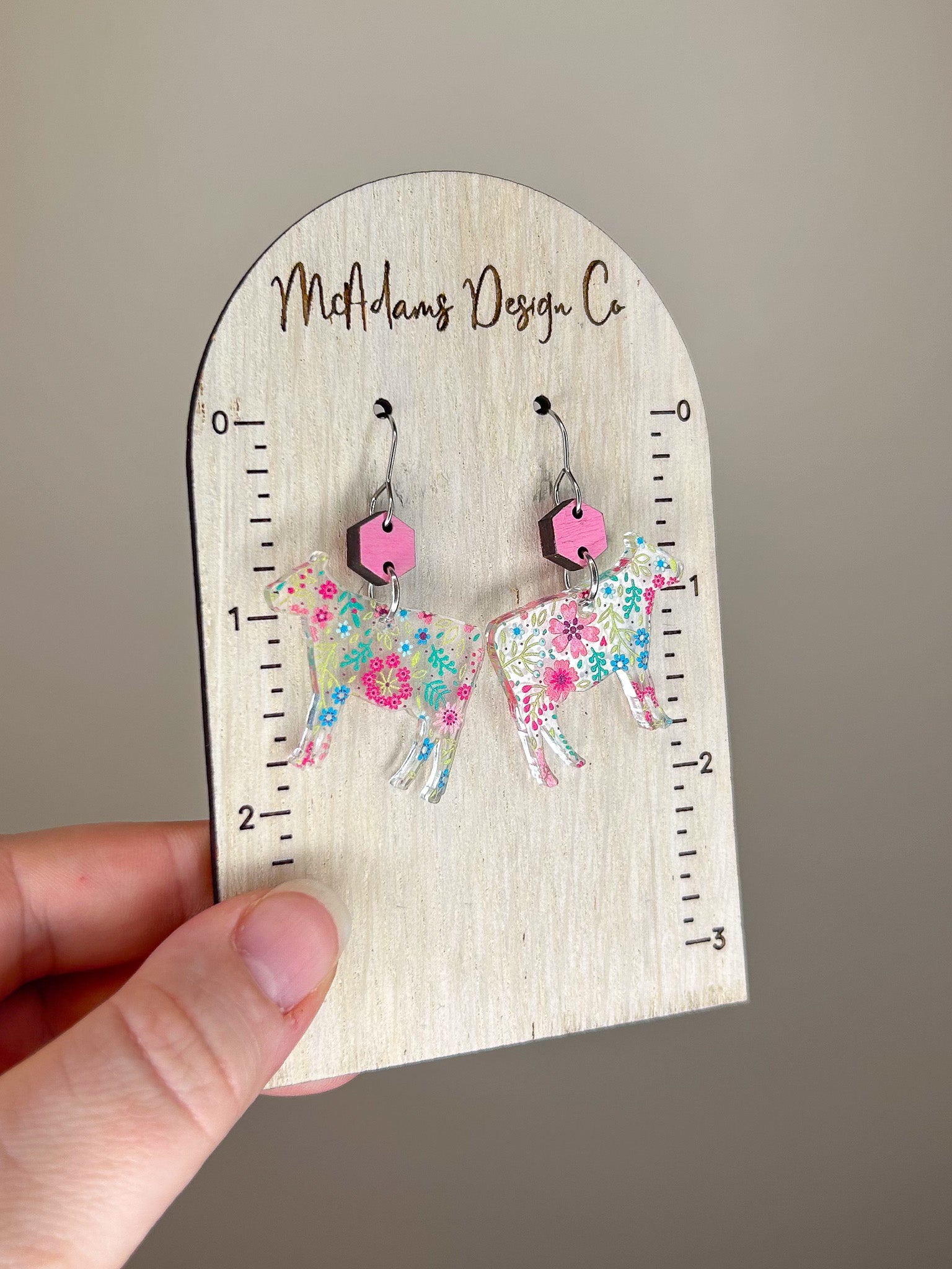 Floral Cow Acrylic Earrings