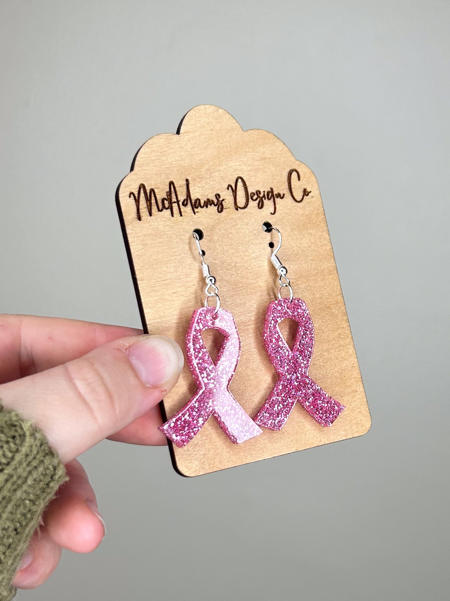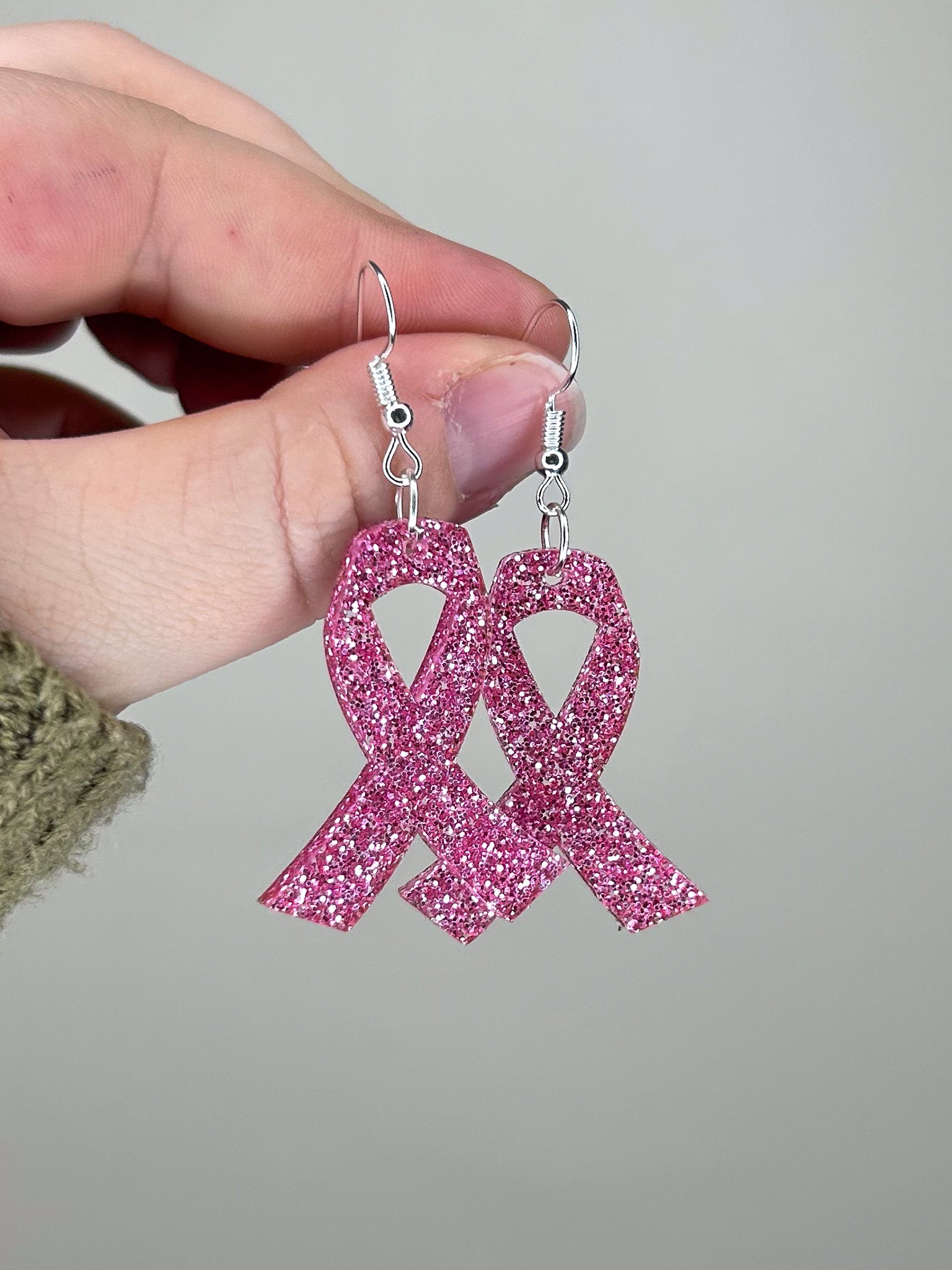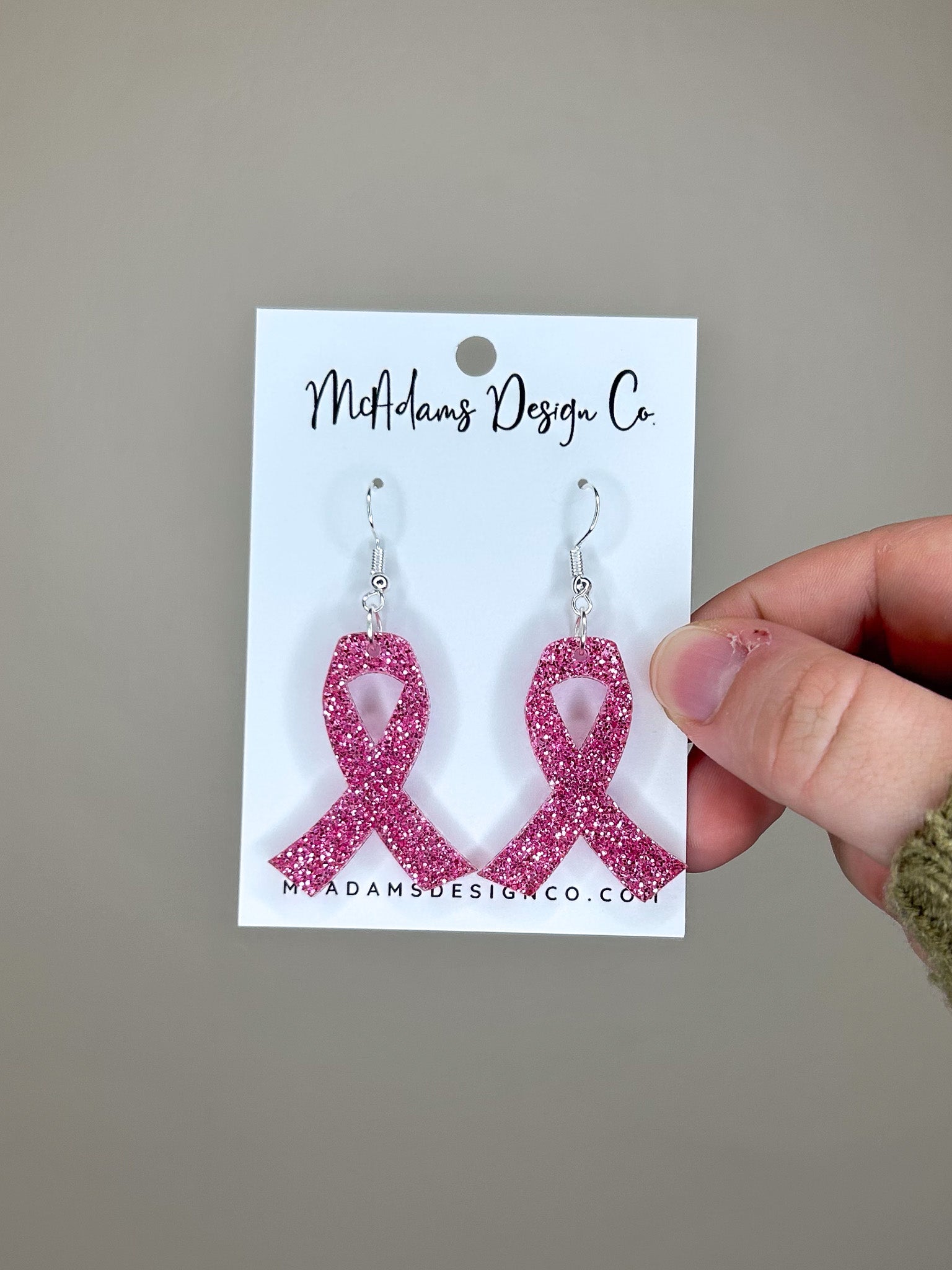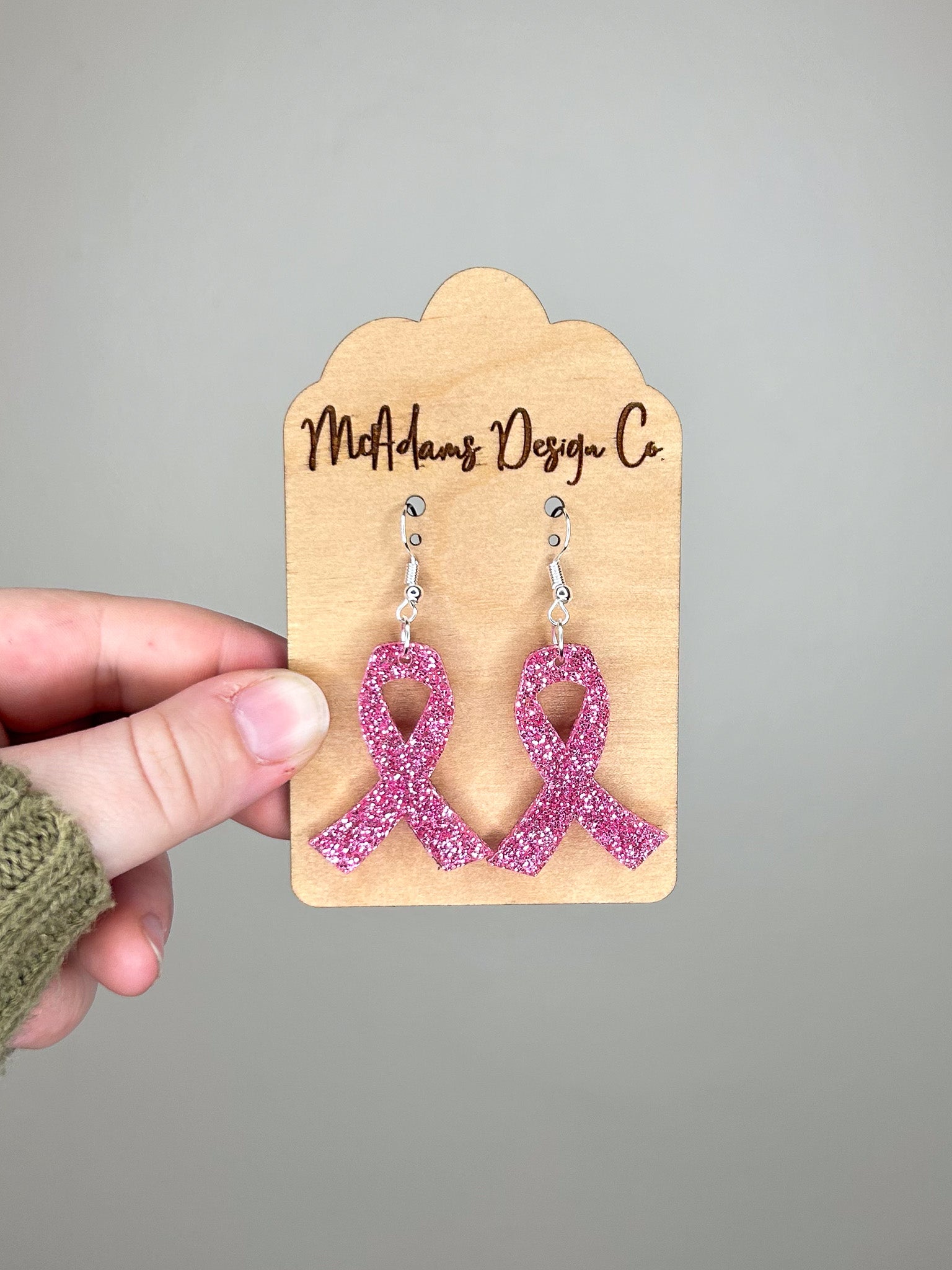 Glitter Breast Cancer Ribbon Acrylic Earrings