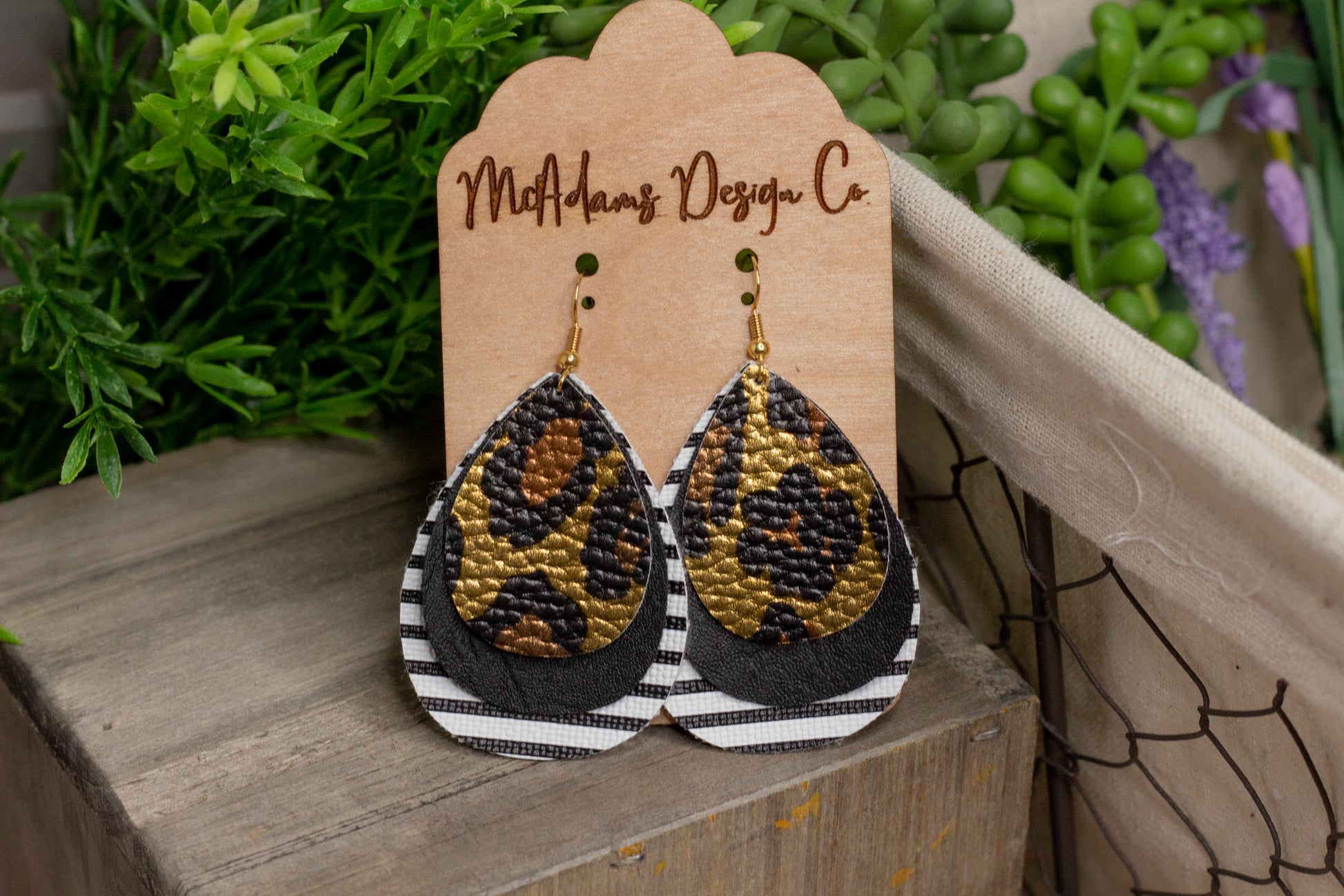 These earrings are beautiful, lightweight, and make perfect gifts. They are the perfect accent to any outfit for any occasion. Made with vegan faux leather and the findings are nickel and lead free, perfect for sensitive ears.