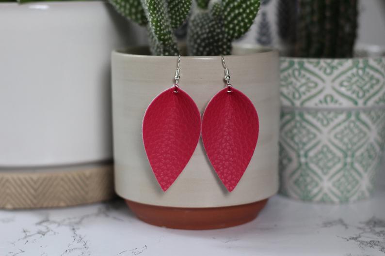 These earrings are beautiful, lightweight, and make perfect gifts. They are the perfect accent to any outfit for any occasion. Made with vegan faux leather and the findings are nickel and lead free, perfect for sensitive ears.