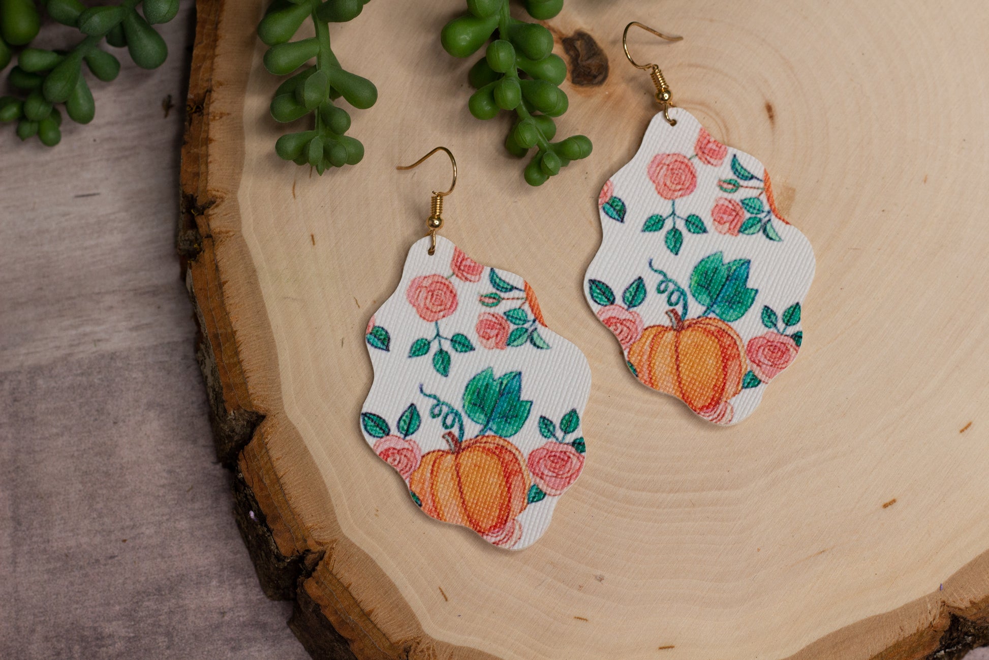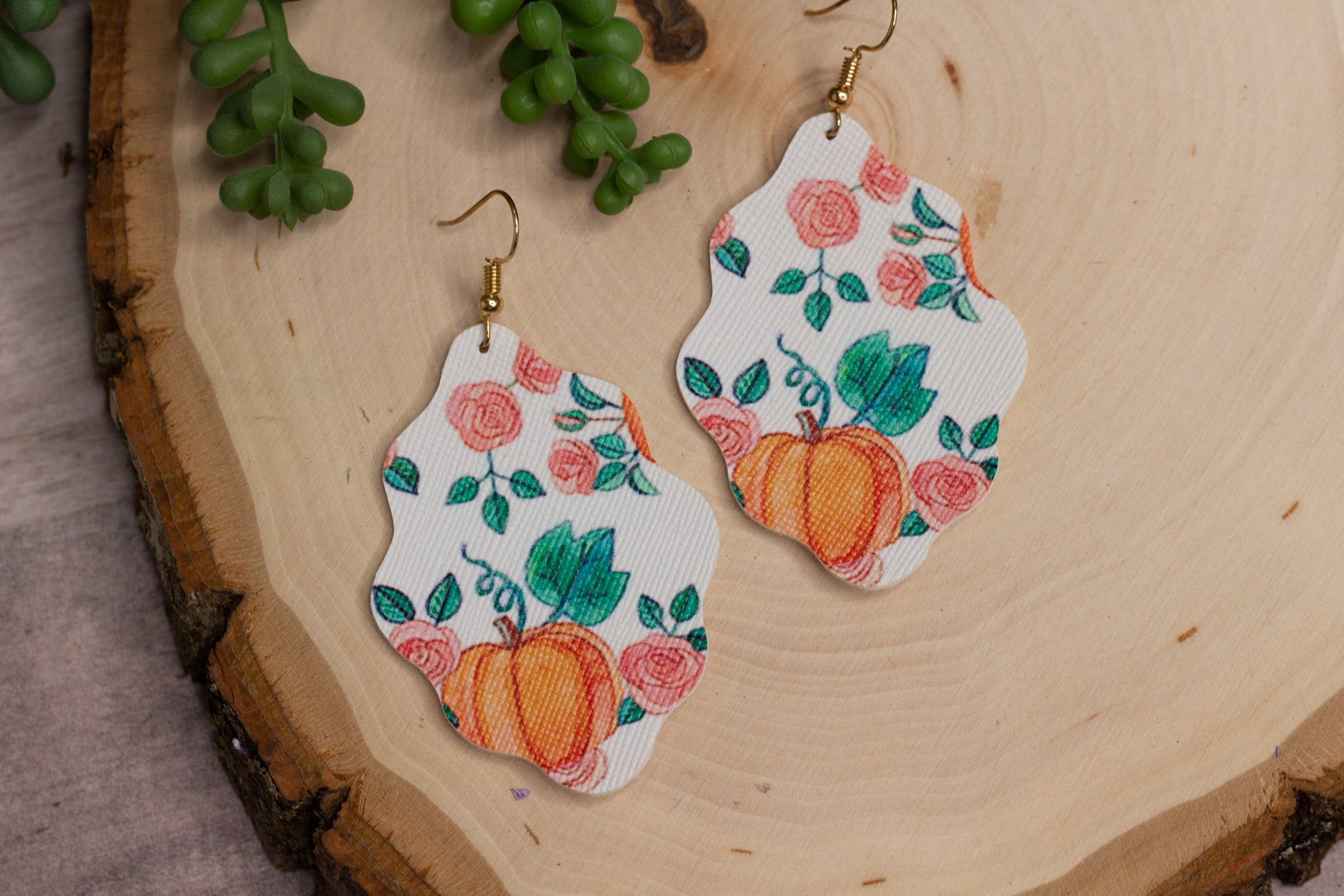 Pumpkin Scallop Cut Leather Earrings