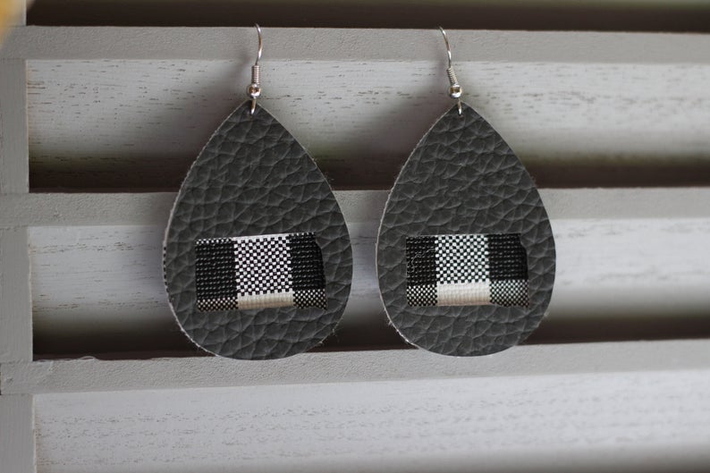 South Dakota Grey & Buffalo Plaid Faux Leather Earrings