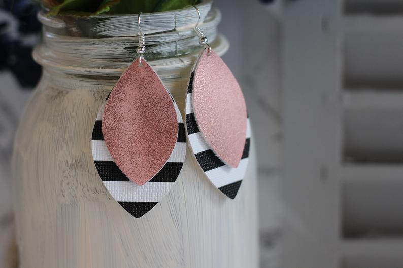 These earrings are beautiful, lightweight, and make perfect gifts. They are the perfect accent to any outfit for any occasion. Made with vegan faux leather and the findings are nickel and lead free, perfect for sensitive ears.