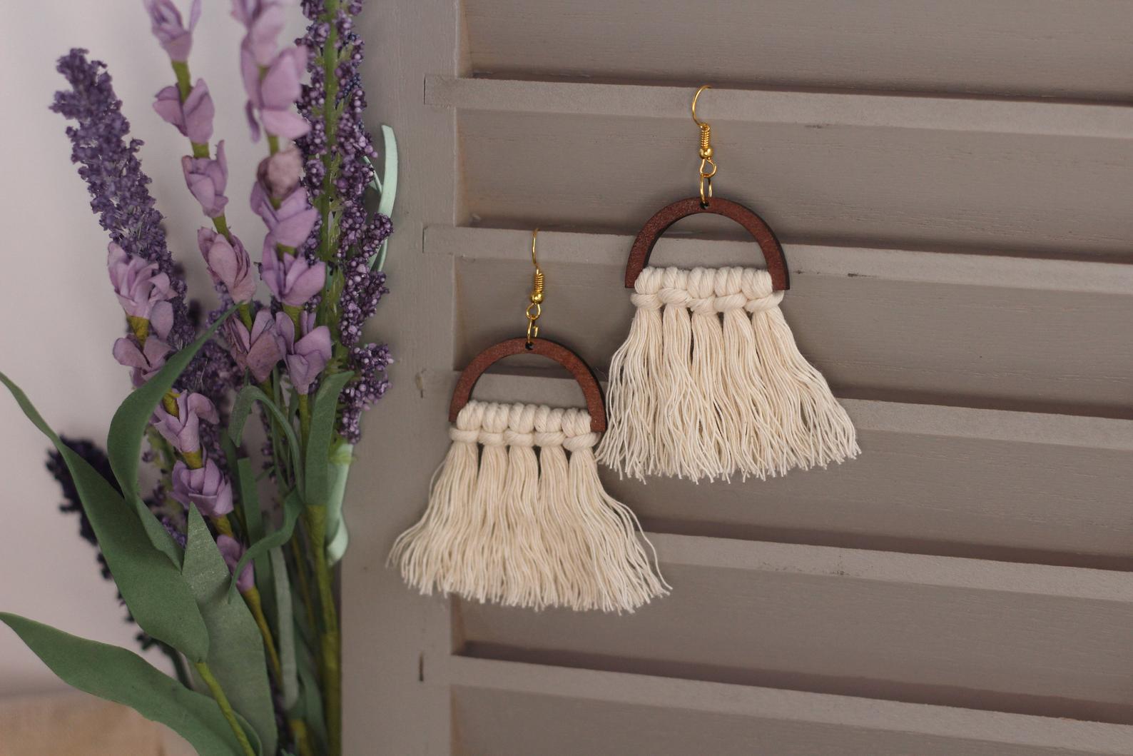 These earrings are beautiful, lightweight, and make perfect gifts. They are the perfect accent to any outfit for any occasion. Macrame earrings are made from laser cut natural wood or stainless steel, natural cotton cord, and the findings are nickel and lead free, perfect for sensitive ears.
